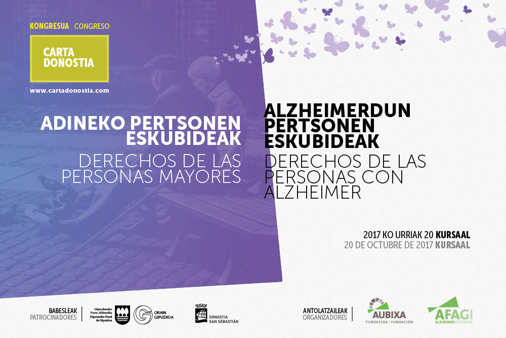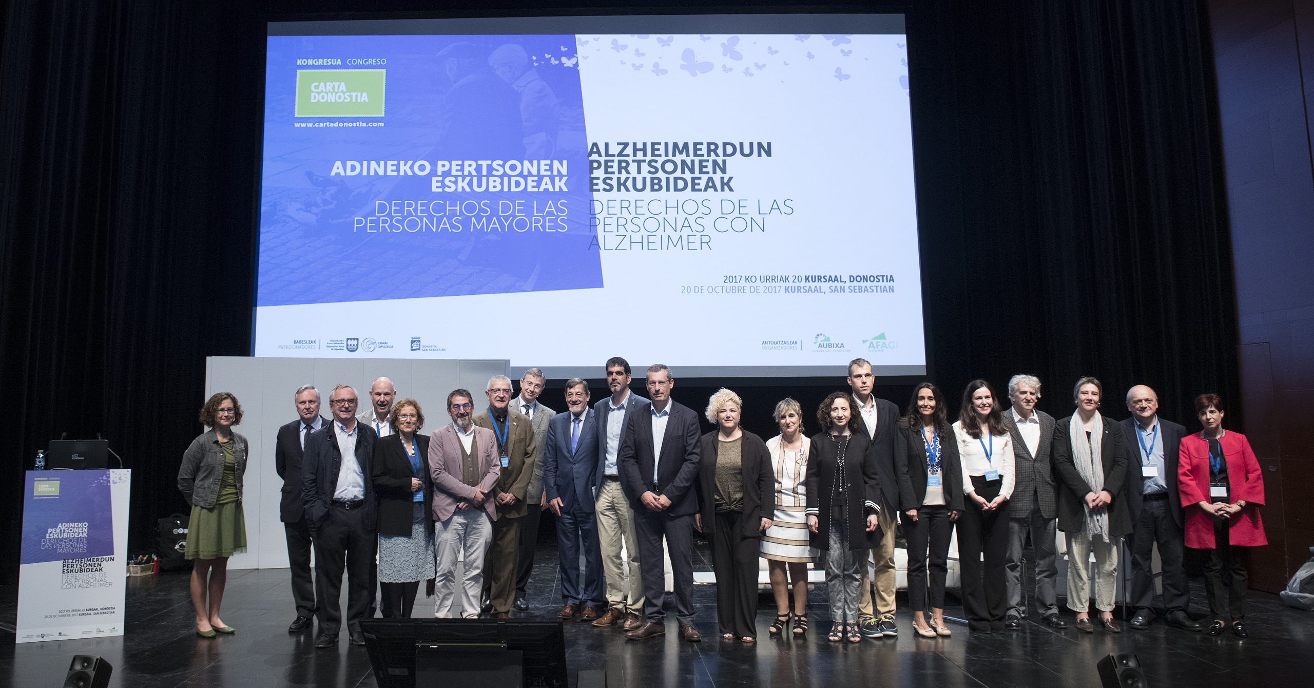 Por ello, así como atender a las especificidades que presenta la problemática que afecta a las personas con Alzheimer y otras demencias, también los derechos de las personas que les cuidan, forman parte de la CARTA DONOSTIA, una CARTA DE DERECHOS DE LAS PERSONAS MAYORES FRENTE A SITUACIONES DE DISCRIMINACIÓN Y DESPROTECCIÓN y una CARTA DE DERECHOS DE LAS PERSONAS CON ALZHEIMER Y OTRAS DEMENCIAS Y DE LAS PERSONAS QUE LES CUIDAN.