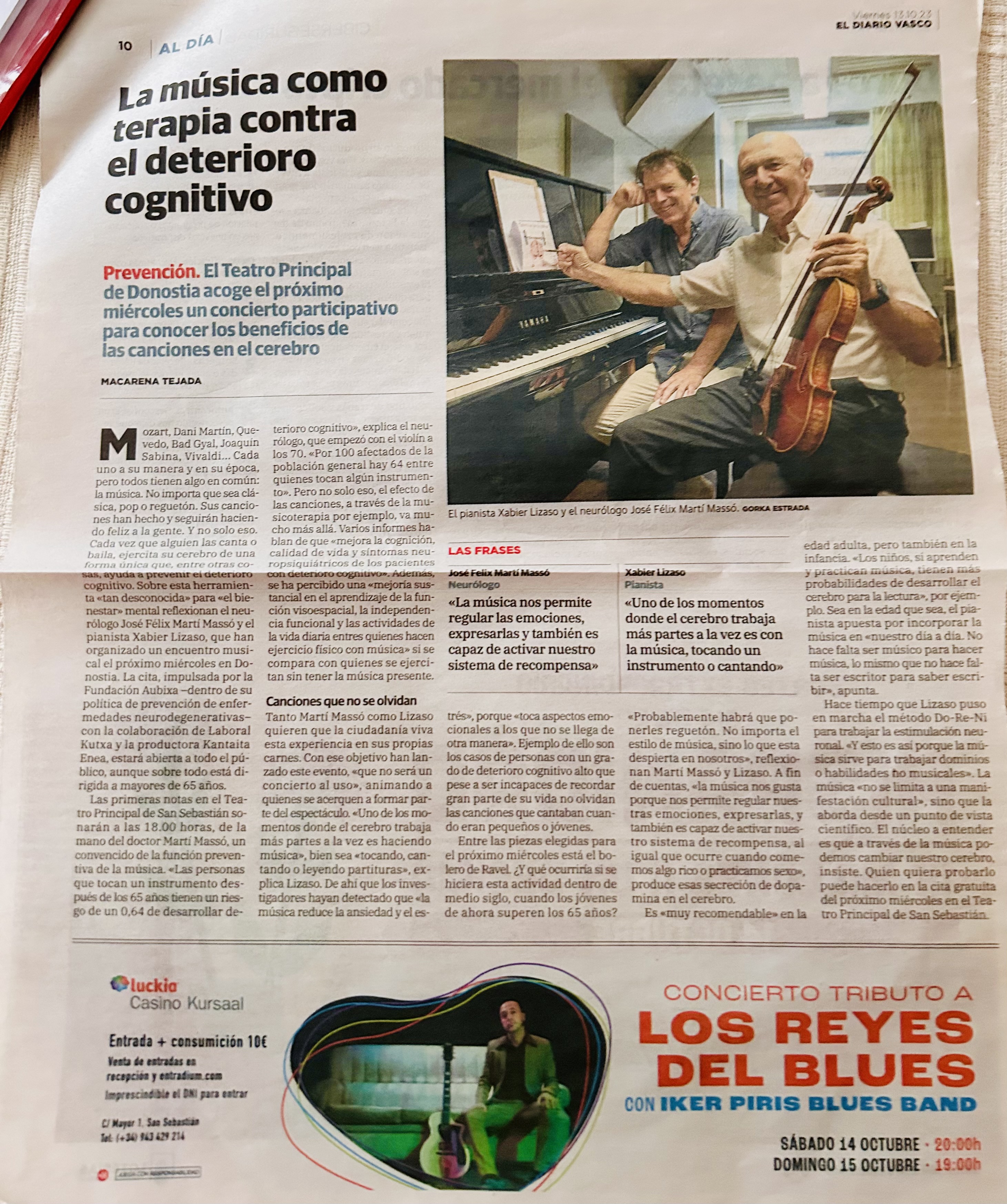 El pasado 18 de octubre de 2023 , en el Antzoki Zaharra (Teatro Principal) de Donostia, la Fundación Aubixa organizaba un taller musical que contó con la intervención de nuestro patrono el Dr. Jose Félix Martí Massó, el músico Xabier Lizaso, responsable y fundador del proyecto Do re ni y el apoyo de Laboral Kutxa y la productora Kantaita enea.