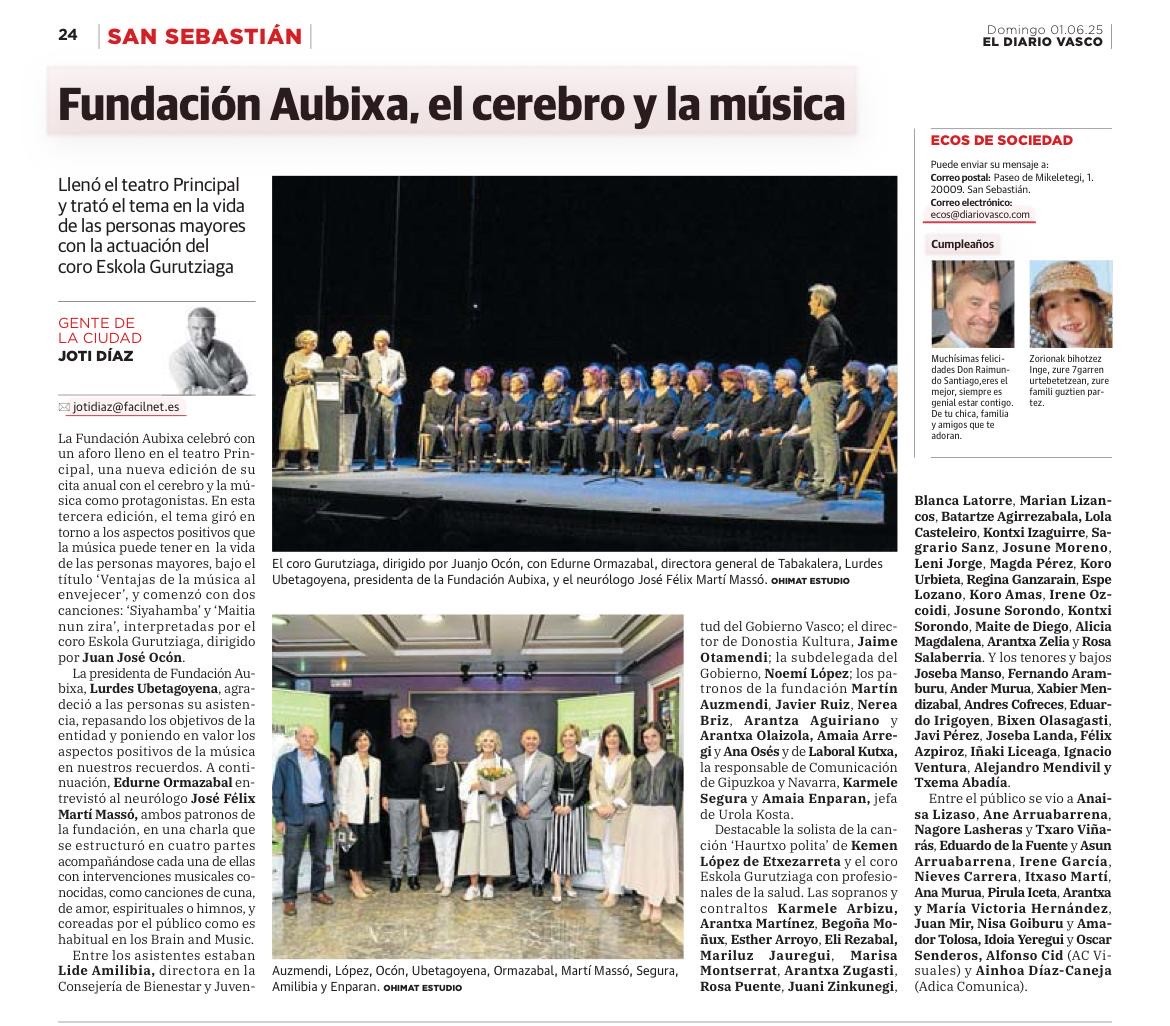 Fundación Aubixa, el cerebro y la música (Diario Vasco)